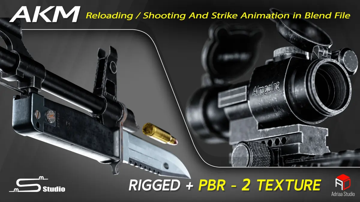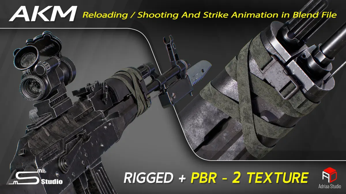 Blend with textures fbx with textures Obj PBR - 2 Textures 4K (jpg and Png) Normal map GL & DX Blender files of animated weapons in separate sections (Reload / Shooting / Strike)