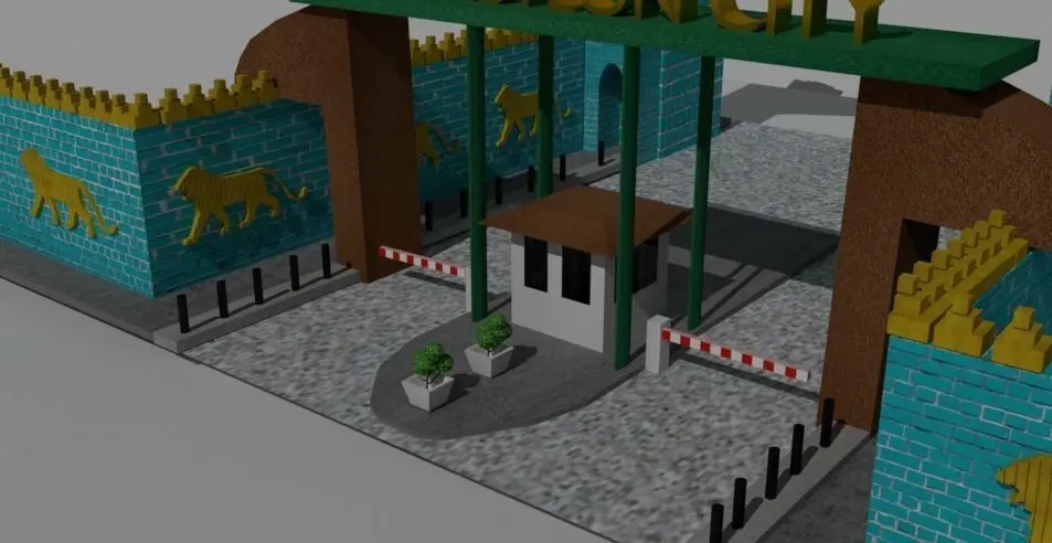 Historical babylon gate with security chick point Entrance on front design by BLENDER 2.79