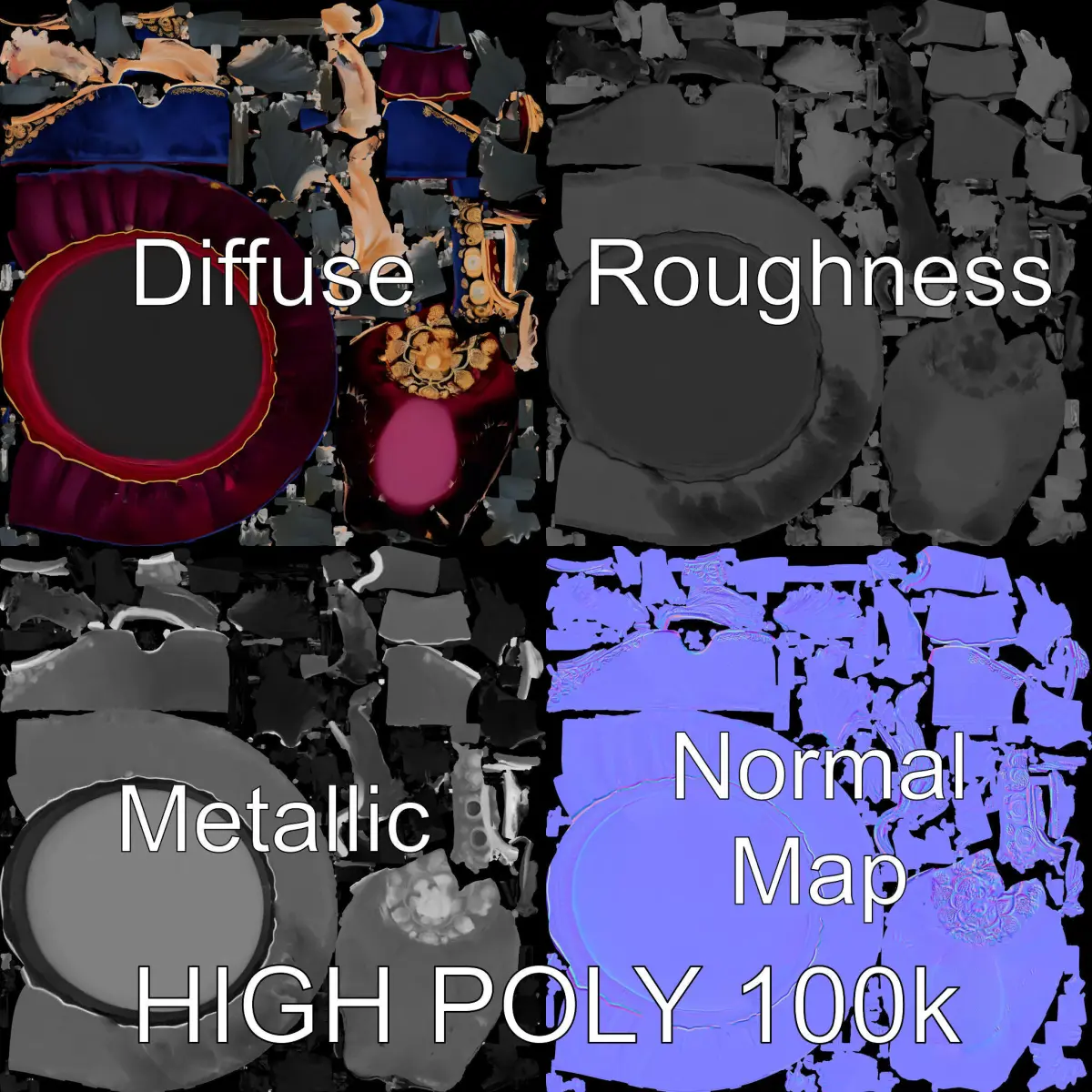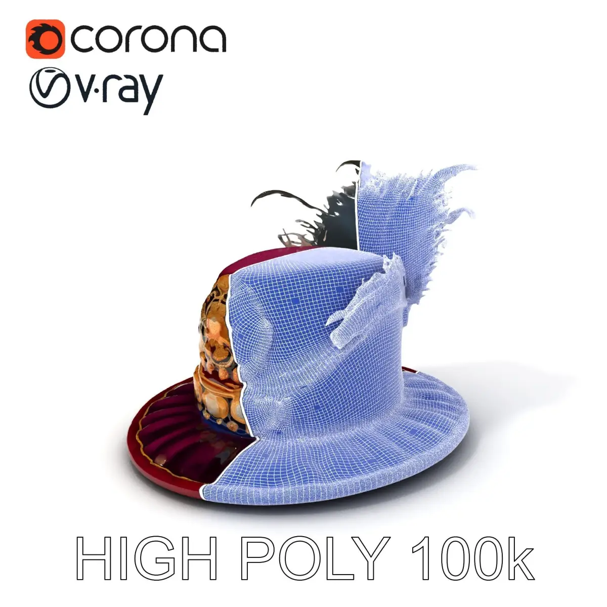 This historical decorative hat model pack offers three levels of detail: low, medium, and high-poly, suitable for mobile, environment, and production rendering. Perfect for historical reenactments, theatrical productions, or digital art. The model's textures feature PBR, Diffuse, NormalMap, and reflection/roughness/metallic maps, ensuring compatibility with modern rendering engines like Vray, Corona, Unity, and Unreal. Accurately unwrapped with no overlapping UVs. Textures are 4096x4096. Please evaluate the quality using the preview images displaying the topology and polygonal mesh in WIRE and WEB 3D Preview. Like and comment if you enjoy the model. The first image is the reference used for creating the 3D model. Use it to assess the accuracy and quality of the execution.