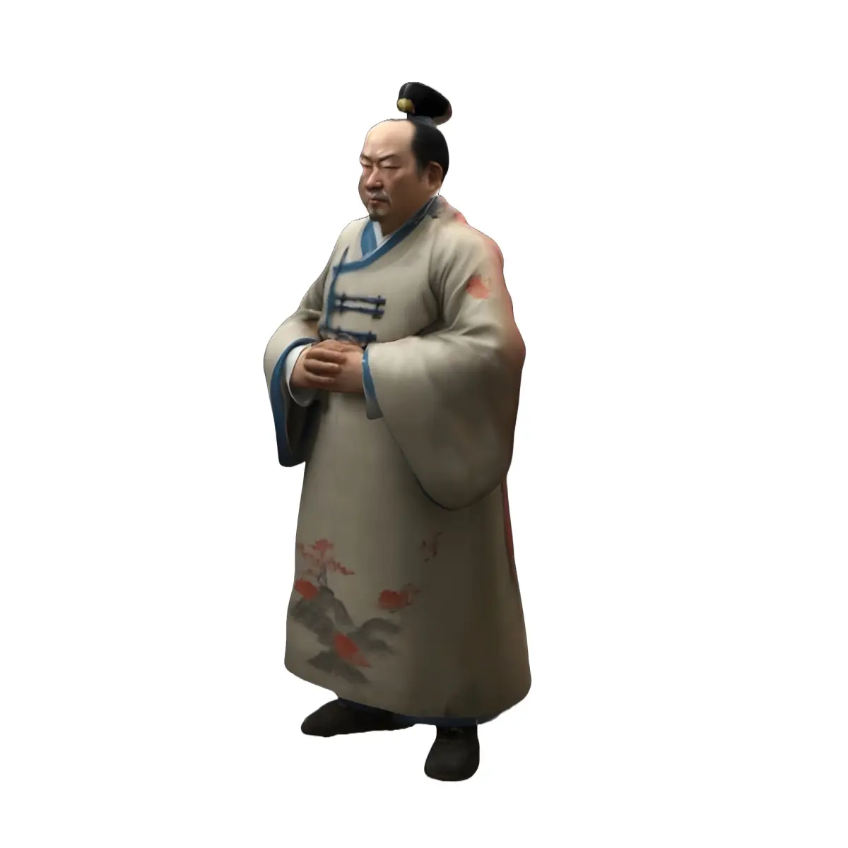 - An Asian nobleman/scholar in a traditional robe with decorative landscape patterns