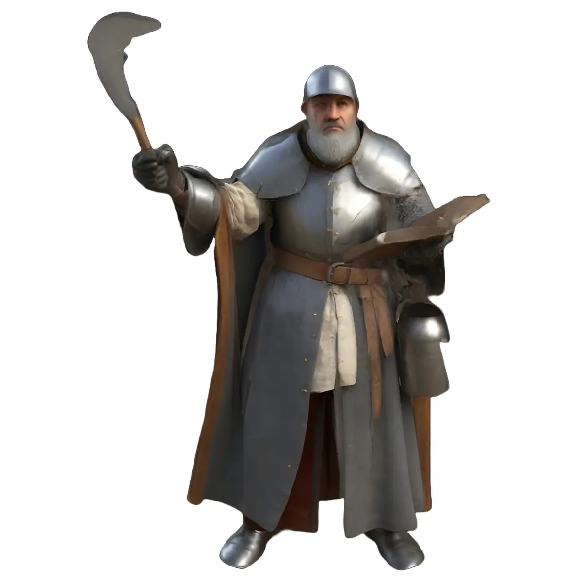 - A Roman or Greek warrior with classic armor, spear, and plume helmet