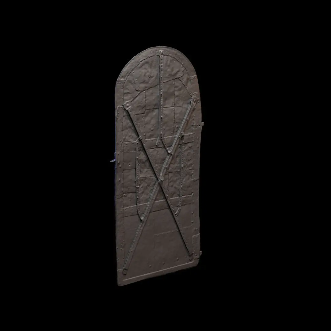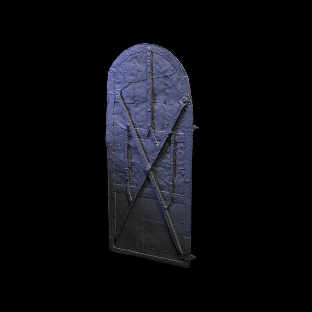 Scan of historical metal door. This is a detailed raw scan without texture and correct topology. The object serves as a reference or model usable for 3D printing. Errors may occur on the 3D scan - unscanned parts, for example, the lower parts of the object on which the object stands.
