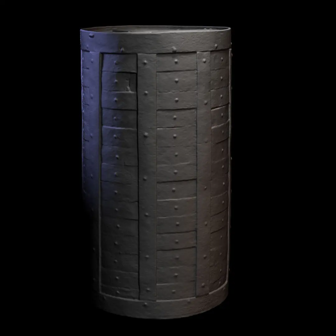 Scan of historical metal barrel. This is a detailed raw scan without texture and correct topology. The object serves as a reference or model usable for 3D printing. Errors may occur on the 3D scan - unscanned parts, for example, the lower parts of the object on which the object stands.