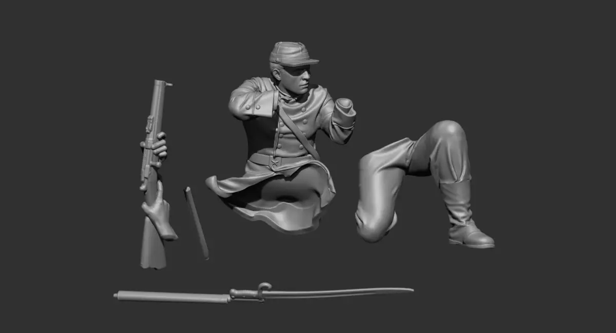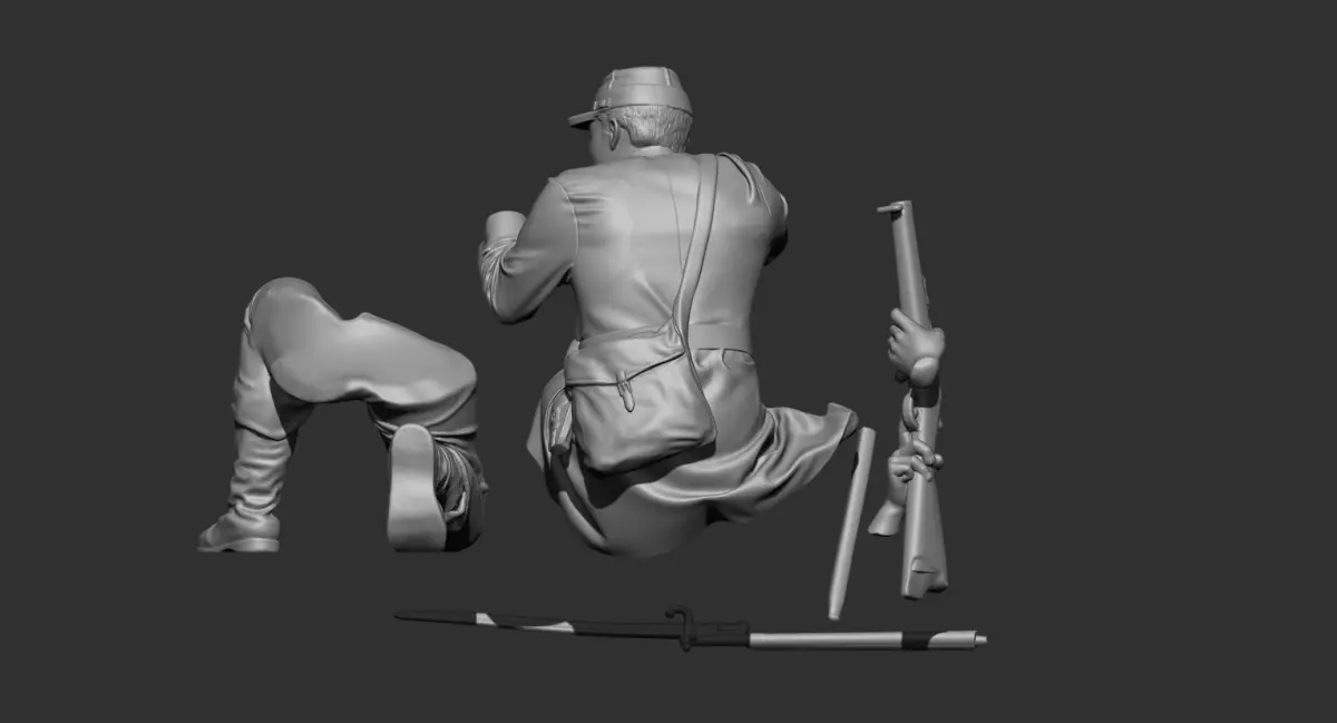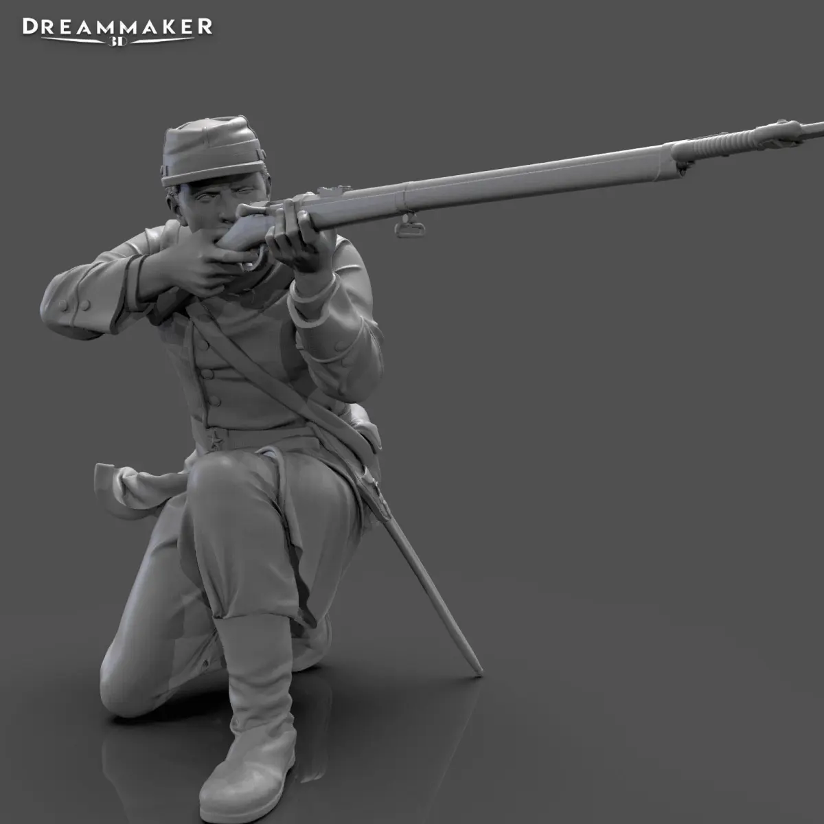 This 3D model depicts a late 19th century soldier in a distinctive uniform that includes a blue jacket, tight-fitting pants and a distinctive kepi. Inspired by the European military style of the period, the design reflects elements seen in conflicts such as the American Civil War and the Franco-Prussian War. The soldier's equipment, including backpacks and belts, resembles that used in the Napoleonic Wars and World War I. Ideal for history projects and collectors of military art, this model combines authenticity and detail, evoking the spirit of Victorian-era soldiers.