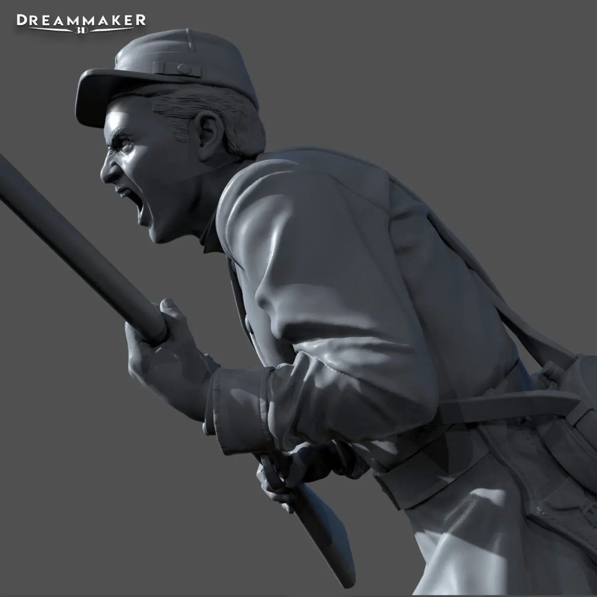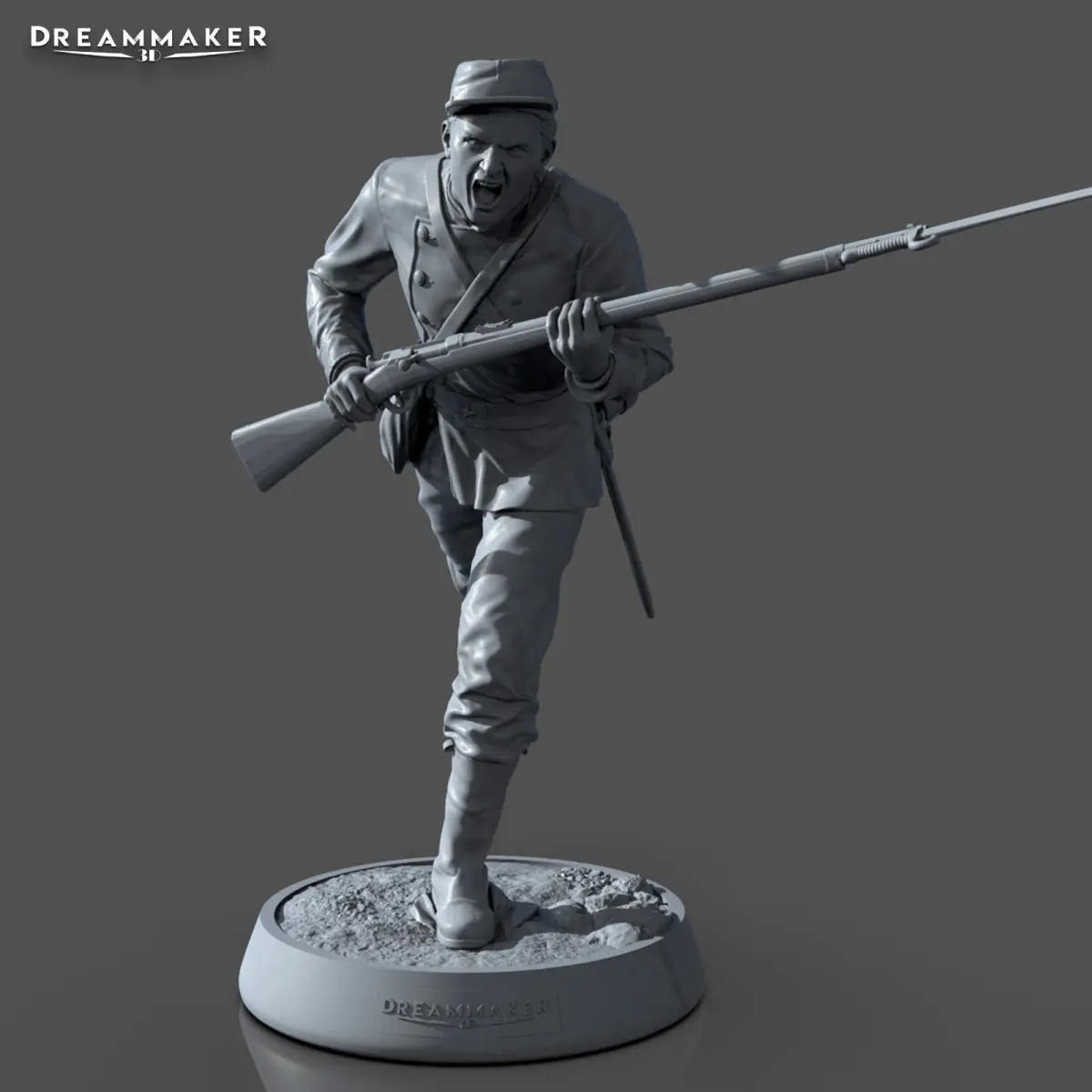This 3D model depicts a late 19th century soldier in a distinctive uniform that includes a blue jacket, tight-fitting pants and a distinctive kepi. Inspired by the European military style of the period, the design reflects elements seen in conflicts such as the American Civil War and the Franco-Prussian War. The soldier's equipment, including backpacks and belts, resembles that used in the Napoleonic Wars and World War I. Ideal for history projects and collectors of military art, this model combines authenticity and detail, evoking the spirit of Victorian-era soldiers.