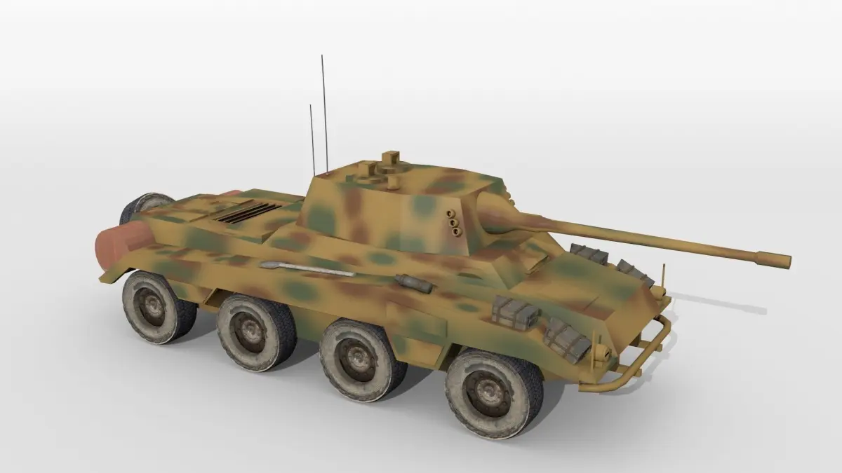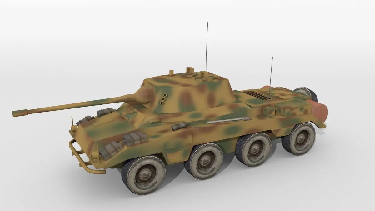Detailed model of historical German armoured reconnaissance vehicle from WW II - other file formats include and x3d. Painted in the desert camouflage version