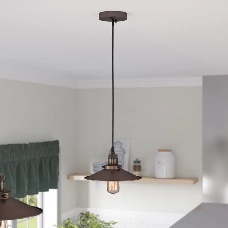 • Whether casting light down over the kitchen sink or stylishly brightening the entryway, pendant lights are hardworking luminaries in any abode. The perfect pick for offering the rustic charm of modern farmhouse-inspired style to your home, this one gives your farm-fresh meals a warm glow with its circular canopy, straight downrod, and cone-shaped shade