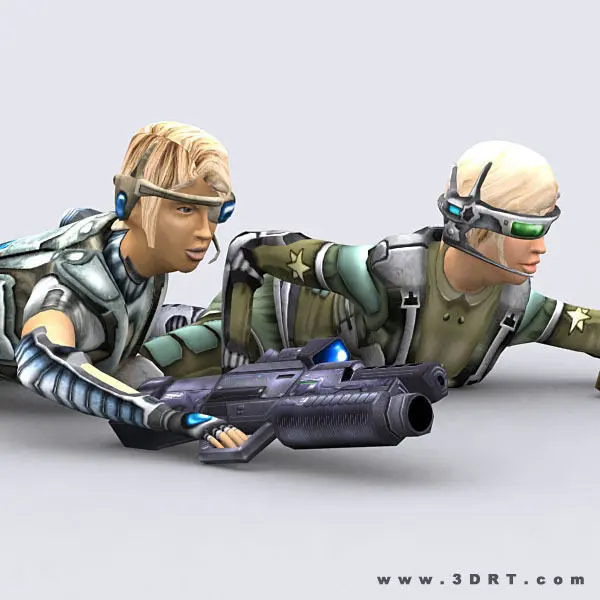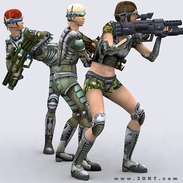Fully rigged and animated 7 sci-fi elite trooper girls 3D models pack. +5 guns textures.