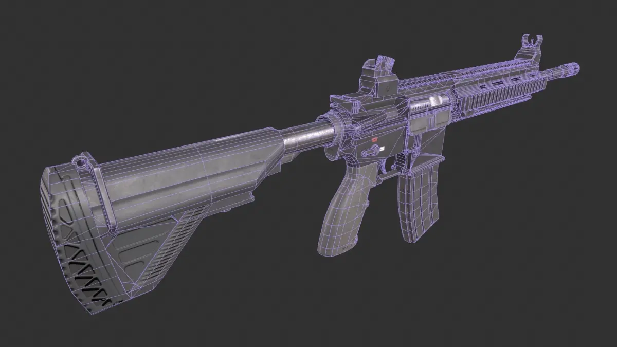 Game-ready HK 416 asset, with PBR textures included in the files. This has 8306 polys (14813 tris) and 7532 vertices.