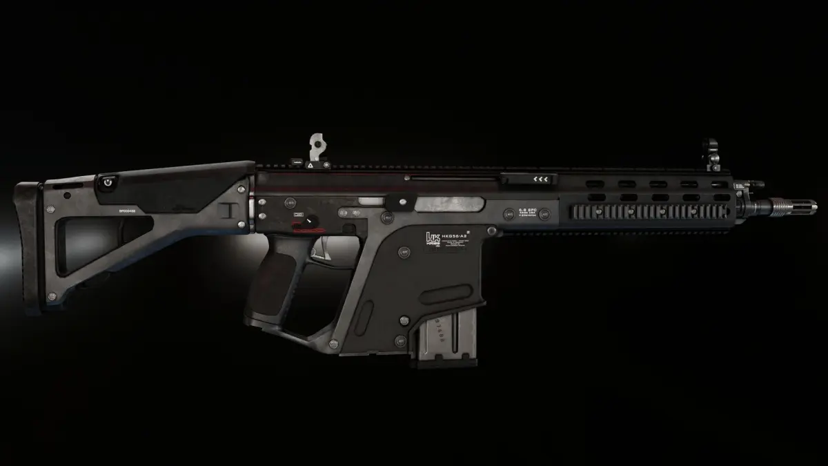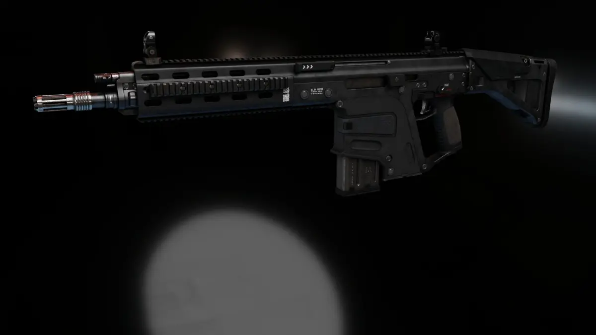 A mockup of a gun made by Alex Jessup about six years ago, a weird mix of HK design with Kriss Vector system. It's totally unrealistic as larger calibers would throw that bolt through the bottom with speed of... well speed of bolt smashing through metal and plastic. Beside that, original image lack few details on some parts, so I was wondering how we could make it more realistic, so I moved few bits here and there, and also came up with different approach to recoil operated mechanism that super V have and separate it to two parts with one part that take initial blow of gasses plus have non-reciprocate handle andecond part have rotating bolt with interlocking slugs that move down as in Kriss Vector. It's still far from realistic but closer as it separates all that power of larger caliber to two parts...