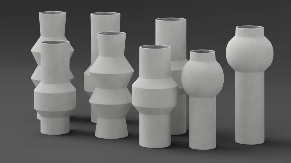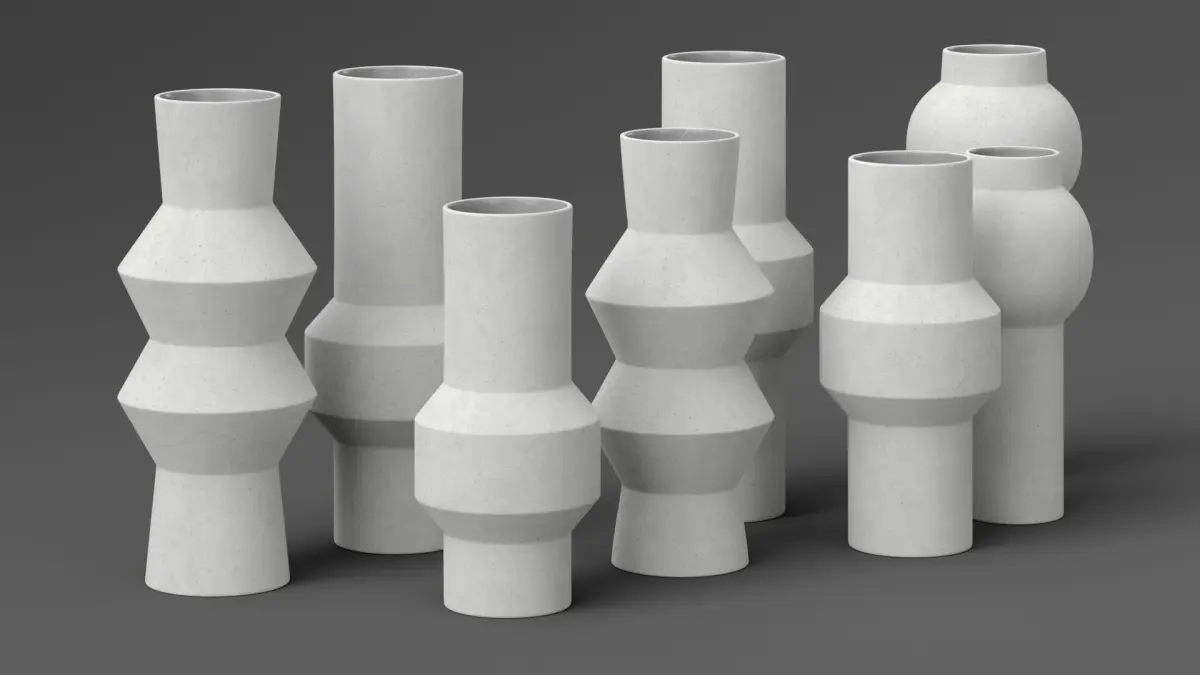 HK living Uberach vase setReady to render decorative set of 8 different models of SPECKLED CLAY VASE