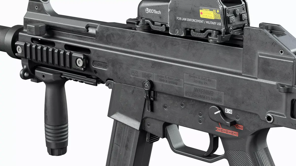 Game-Ready high-quality 3d model HK UMP 45 for Unreal Engine, Unity and other PBR game engines, renderers, first Person Shooters, VR games, and your other projects.
