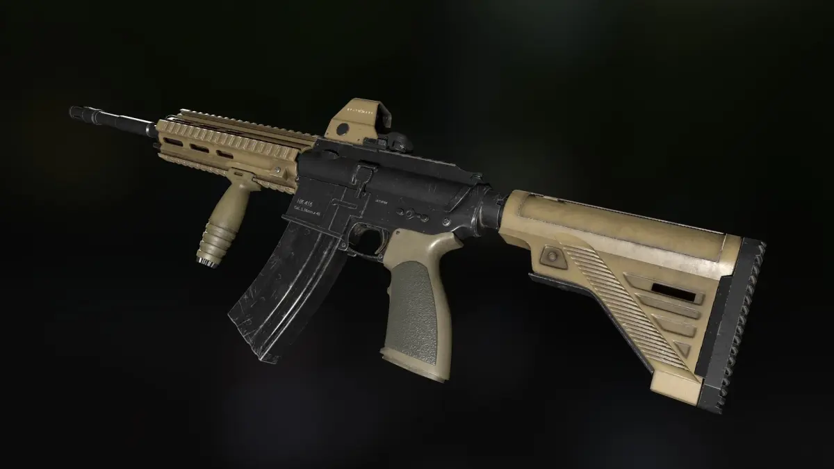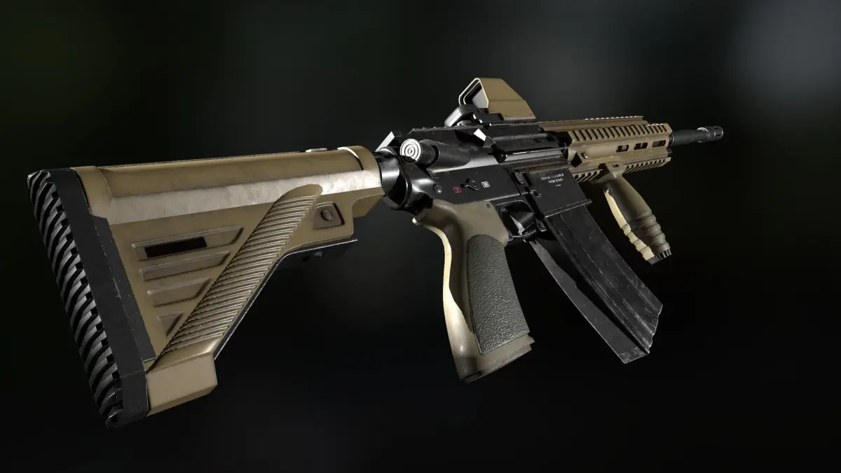 HK416 heckler and koch Assault riffle gun is the low poly model PBR render I will provide you 4k texture and low poly mesh