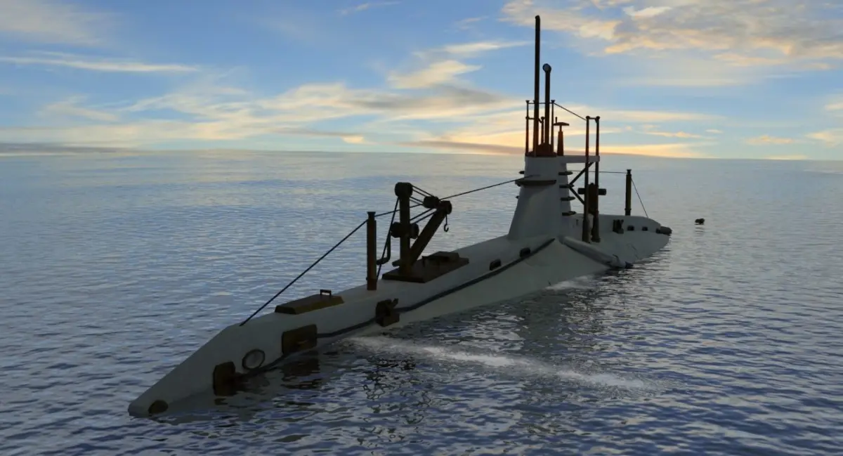 HISTORICAL NOTE: HMS A13 was an A-class submarine built for the Royal Navy in the first decade of the 20th century. She was the first British submarine not to use a petrol engine.