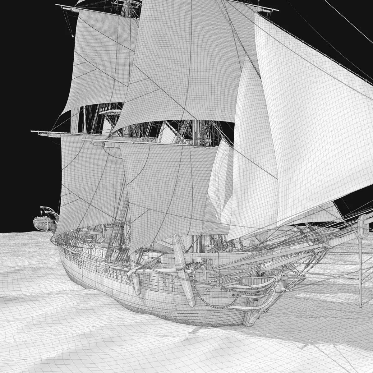 The H.M.S. Beagle was a Cherokee-class ship, famous for carrying the naturalist Charles Darwin in the journey (1831-1836) that inspired the theory of the Origin of Species. This 3D model is very accurated and based on historical research and documentation, considering also the improvements that have been introduced to the ship's hull and equipments before the Darwin's journey.The model is originally made in Blender and supports subdivision surfaces; FBX format is provided in standard version and also in a reduced version without edge bevels.NB: All the materials uses PBR textures: Diffuse and Normal textures are standard RGB images; Metallic and smothness are encoded in the same PNG texture to optimize memory (RGB = Metallic; Alpha = Roughness).Polygons and vertices after smoothing ( subdivision surface ) : Polygons - 3,430,602 ; Vertices - 3,447,607