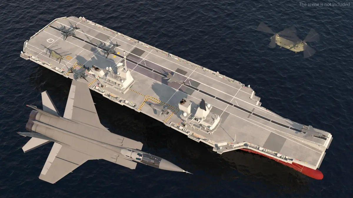This highly detailed model includes the expansive flight deck, aircraft launch and recovery systems, defensive weaponry, radar and communication arrays, and other structural elements. The design accurately captures the scale, shape, and key components used in naval operations, making it suitable for realistic simulations, educational visualizations, and creative renderings.