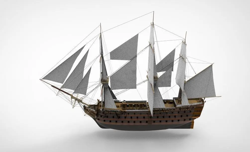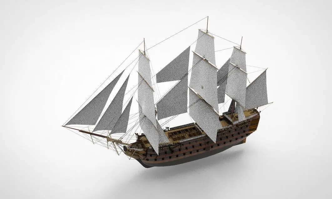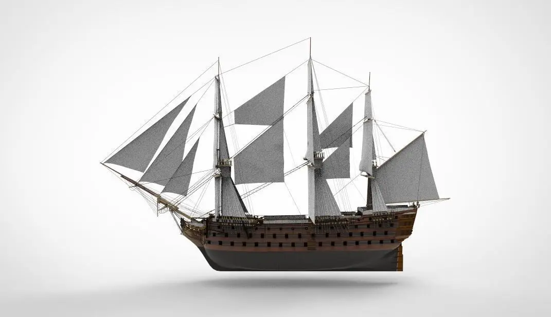 The 3D model of HMS Victory is a detailed and meticulously crafted representation of one of the most famous warships in British naval history. Launched in 1765, HMS Victory is renowned for her role as Admiral Lord Nelson's flagship at the Battle of Trafalgar in 1805. This 3D model captures the grandeur of the 104-gun first-rate ship of the line, featuring intricate details such as its three towering masts, elaborate rigging, and the imposing broadside of cannons. Modelers and history enthusiasts prize the HMS Victory 3D model for its historical accuracy and the opportunity it provides to explore the ship's legendary design and construction. This digital recreation serves as both an educational tool and a stunning piece of naval artistry, making it a sought-after addition to any collection of historical ship models.