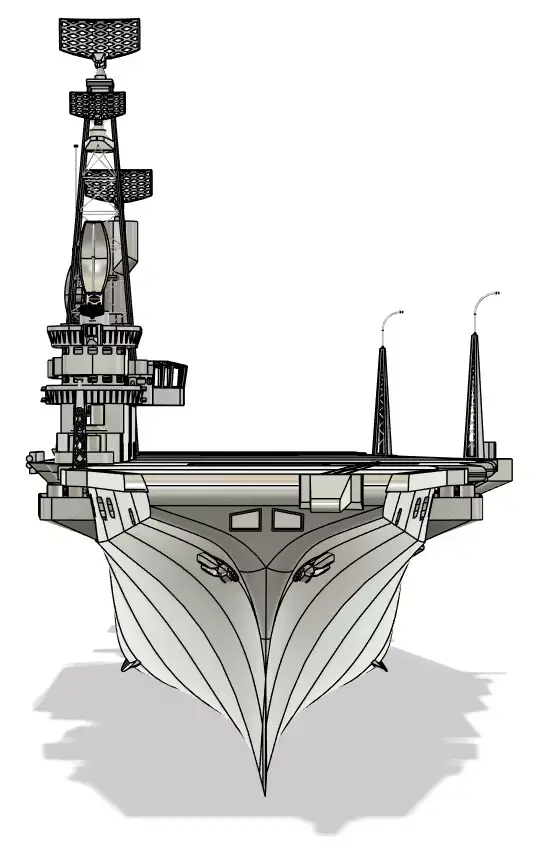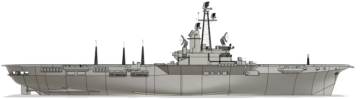 Edit 1: It was brought to my attention that the 25 de Mayo had a flight deck that was extended a bit more than the Karel Doorman. As such, I made an add-on file that matches the curves of the base model to extend the flight deck. (Picture included in photos above.)