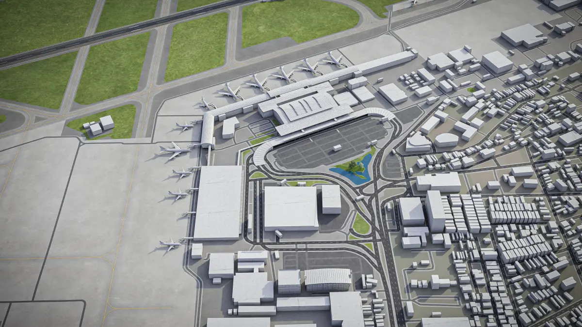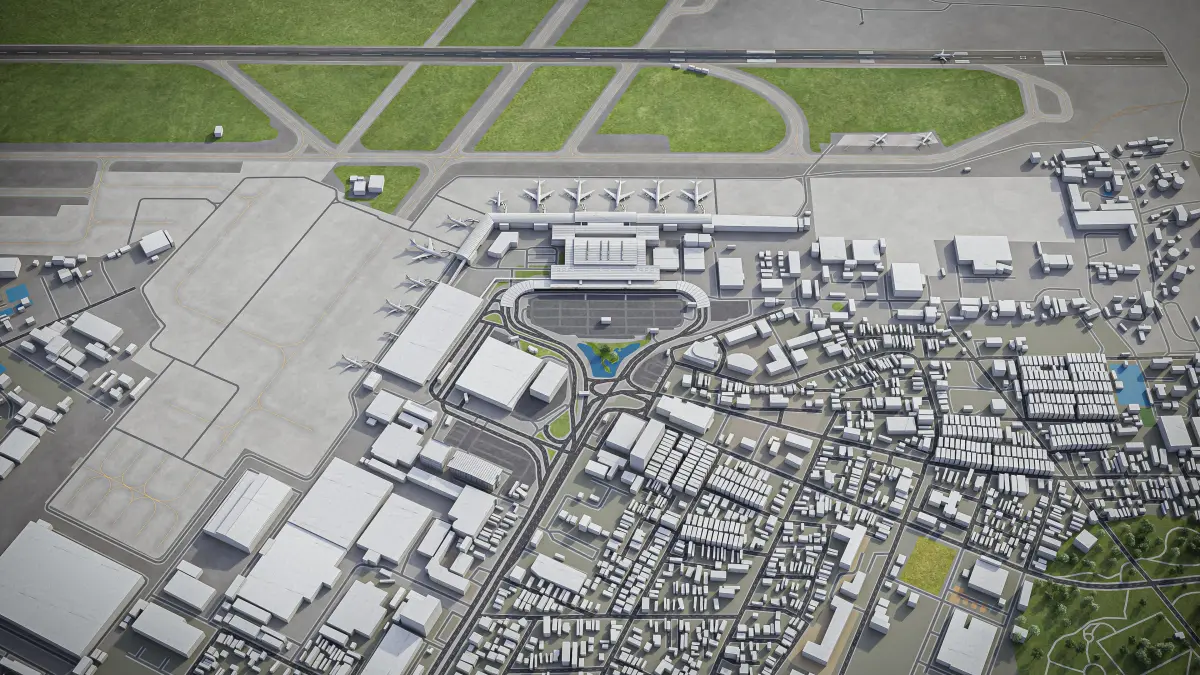 This is exact and accurate to-scale 3D model of Ho Chi Minh - Tan Son Nhat Airport (SGN) and its surrounding area based on GIS data (January 2022)