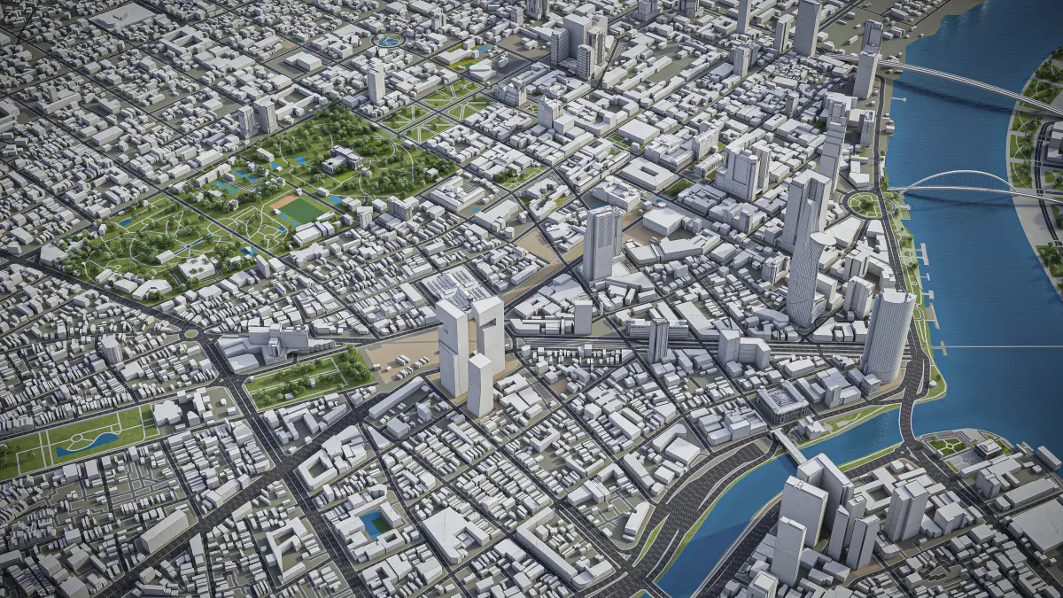 - Full city extents up to 100 x 100 km — or crop to the area of interest for better format compability and scene performance