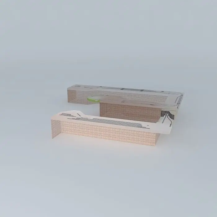 This is a small HO railroad. The floor measures 23' X 21.5'. Modular components can be accessed by exploding one of the sections. I suggest section I, You can use this as is or change it. All the sections are components. This can be put into a 2-car garage or bonus room. Just like to share this with you. It does not have legs, they are understood to be there. Or it can be attached to a wall; the peninsula does neet to have legs, however.