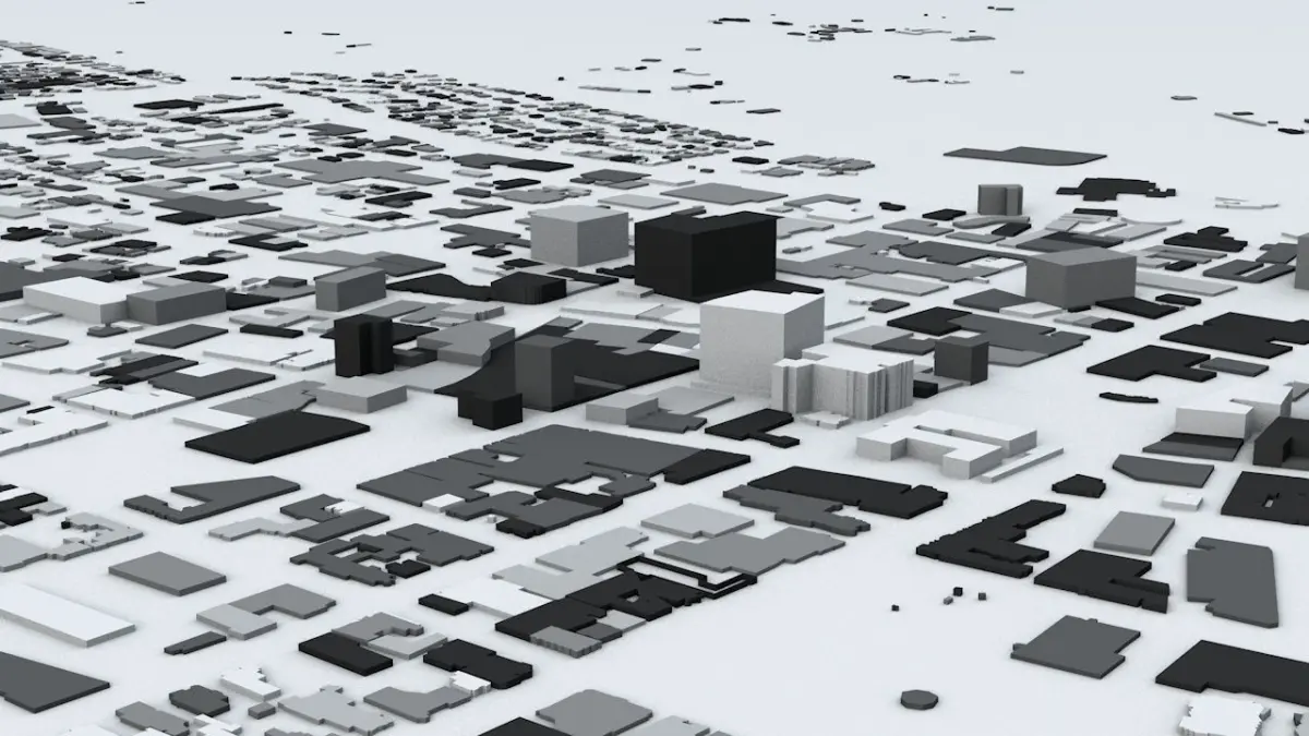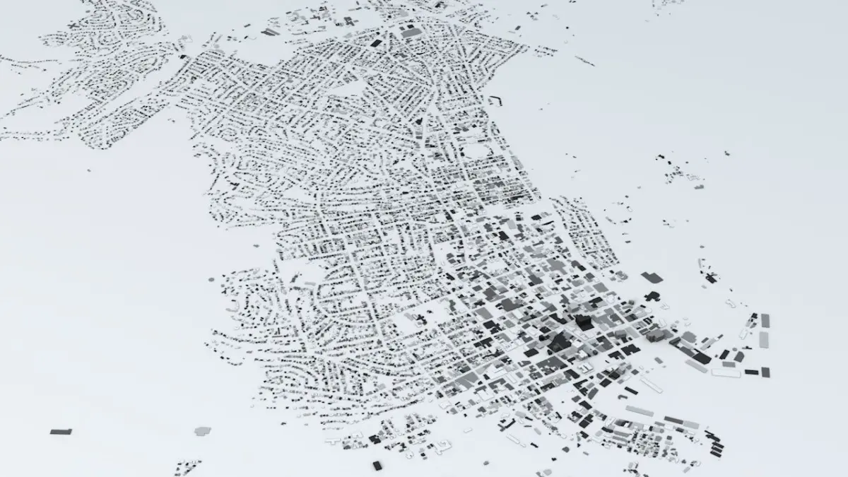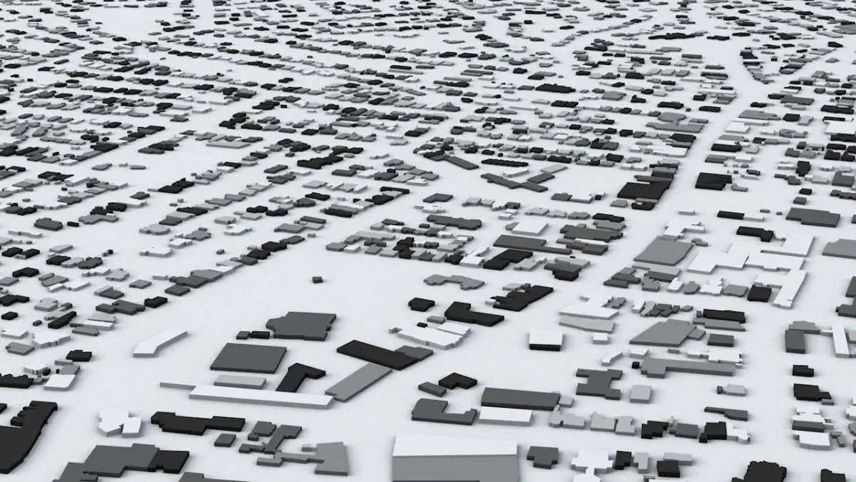 - the model is positioned on a flat surface (all buildings are on the “floor” - no elevation data included)