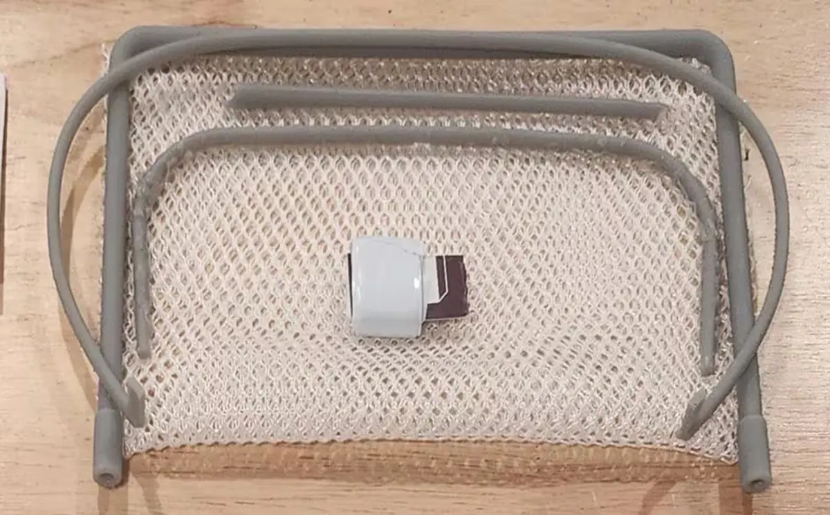 netting found on amazon, and i use white electric tape for the button.https://www.amazon.ca/gp/product/B00YPSHVR8/ref=ppx_yo_dt_b_search_asin_title?ie=UTF8&th=1