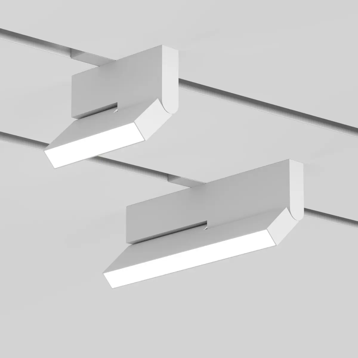 The linear luminaire for the OneLine track system is compact with high brightness output despite its small size, featuring a 30 mm wide light section. Its tiltable mechanism allows the luminaire to be tilted within a 90° range and rotated around its axis by 360°.