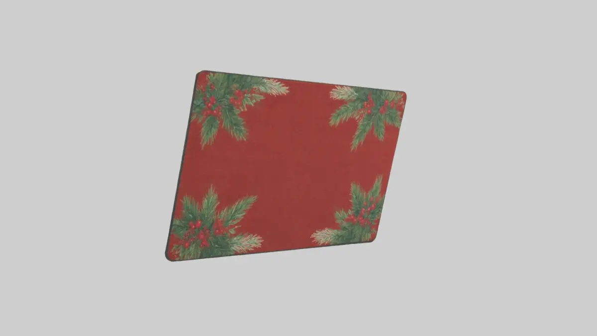 A detailed 3D model of a holiday-themed door mat, perfect for festive home decor, holiday-themed renderings, or promotional materials. The model features realistic textures and details, making it ideal for use in home interiors, holiday decorating, or e-commerce product displays. Available in FBX, OBJ, STL, GLB, USDZ, and BLEND formats for compatibility with various 3D software.