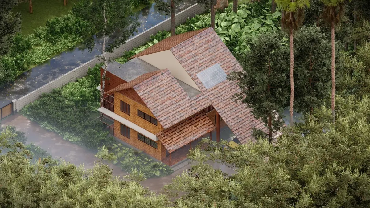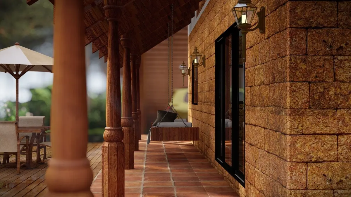 The gilded Nest:This 3D model is a realistic representation of a traditional kerala holiday retreat, also known as a nalukettu. The architecture reflects the ancient principles of vastu shastra, which harmonize the natural elements of earth, water, fire, air and space.The model features a detailed exterior the home, with authentic textures and materials. The exterior includes a tiled roof, wooden pillars, carved doors and windows, and a veranda. . The model also comes with some furniture and accessories, such as a swing and other courtyard equipments.The model is suitable for various applications, such as VR/AR projects, games, animations, simulations, and educational purposes. It can be easily imported and customized in any 3D software or engine. The model is available in multiple file formats, including SKP, FBX, OBJ, and MAX.