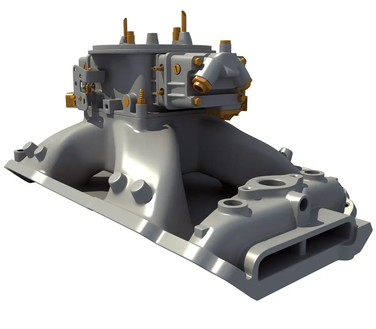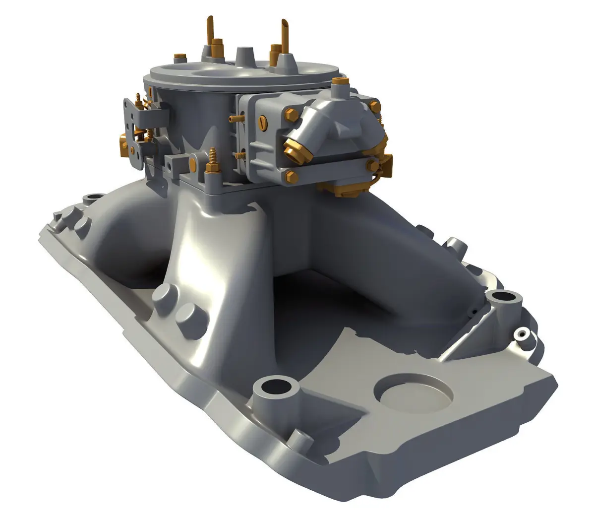 Quality 3d model of Holley carburetor and intake manifoldPreviews rendered with V-Ray.