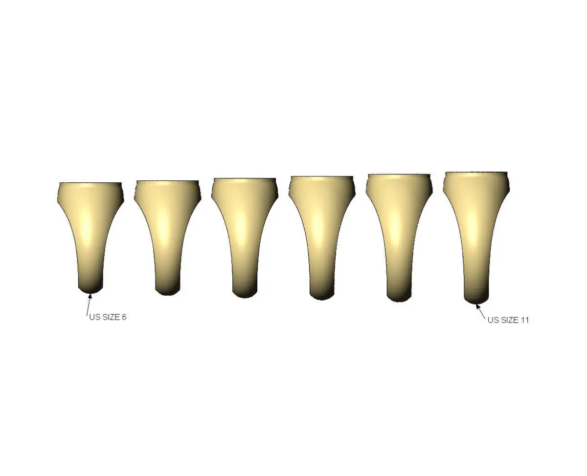 Sizes : US size 11,10,9,8,7,6 thickness of the shelled section is 0.75mm.