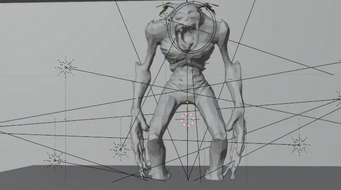 Designed for use in VFX cinematic sequences, this creature embodies psychological horror and supernatural presence, meant to evoke unease before it even moves. Its form was crafted with attention to symmetry in silhouette, yet its textures and glow create an eerie, unpredictable feel.