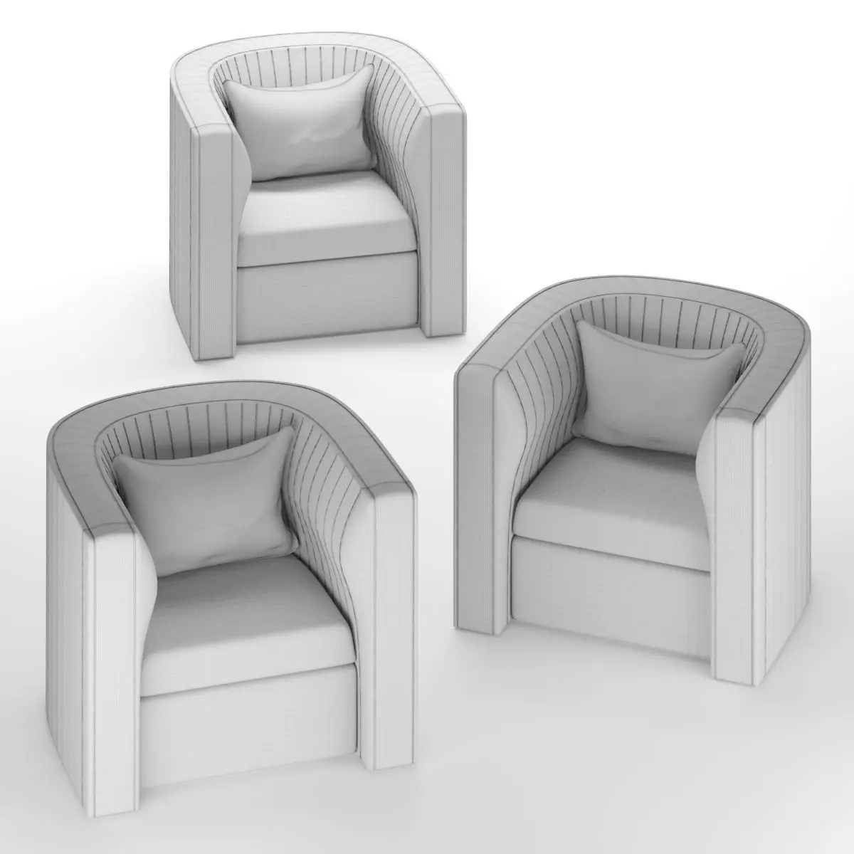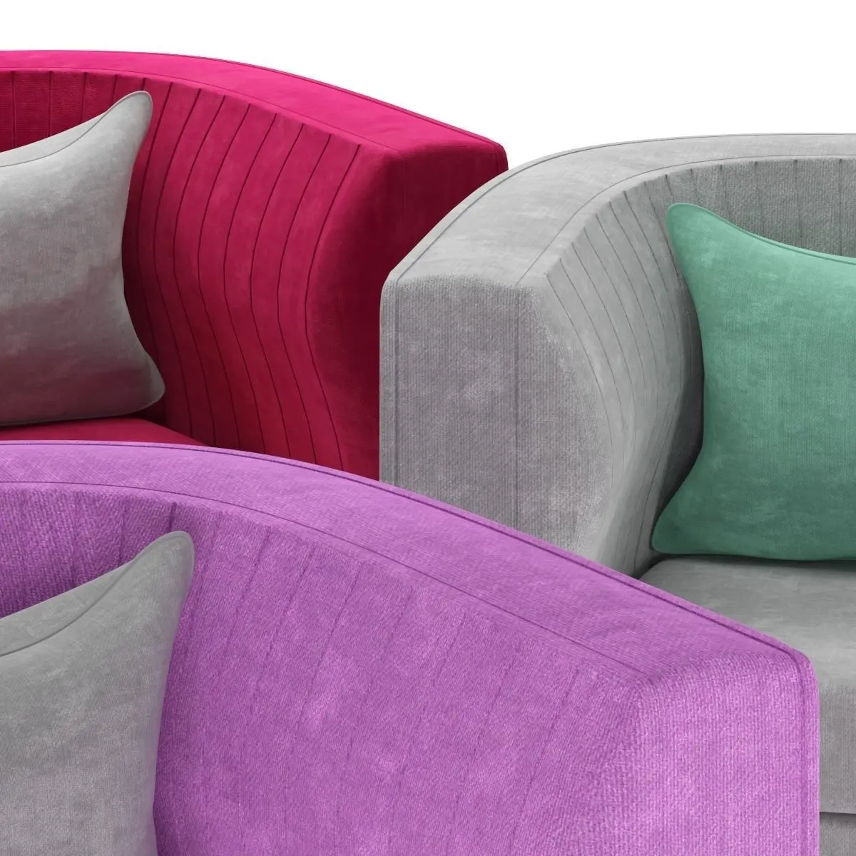 It is modeled according to a furniture named Dee Sofa from Holly Hunt company. Here is the link https://www.hollyhunt.com/ShowProduct.aspx?ProductID=7779&ManufacturerID=1 Materials are velvet. Some other colors of velvet has been laid in material window of 3D file if the current one was not considered.The amount of polygons is written is counted with turbosmooth.