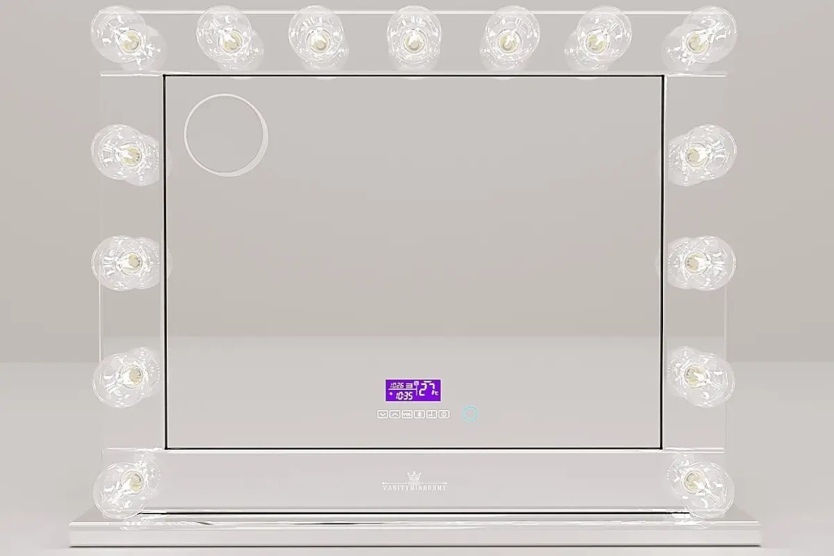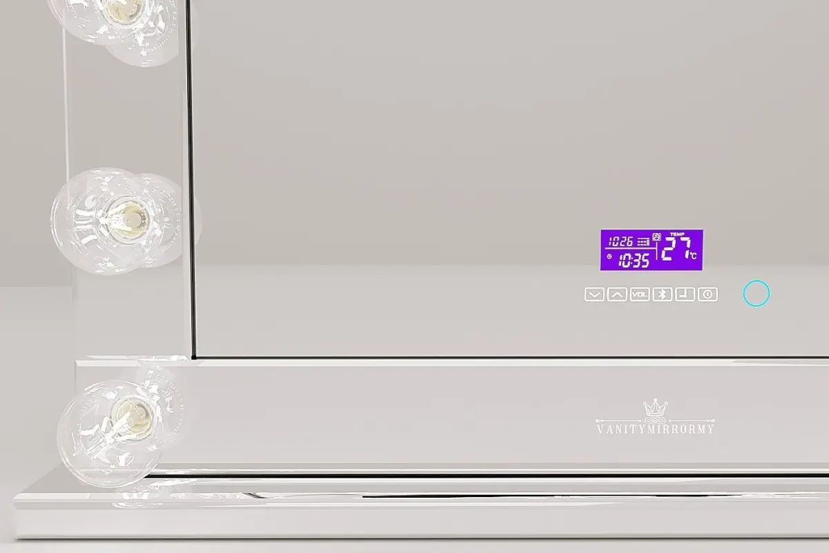 Hollywood makeup mirror with lights bedroom Hollywood led mirror Hollywood mirror with light bulbs Vanity Mirror Super realistic makeup display with transparent led light bulbs Bluetooth music player display mirror Touch sensor makeup mirror Realistic makeup pink bedroom Realistic makeup display with makeup brushes Acrylic makeup organizer Neon sign Beauty accessories Hairdryer Lipstick