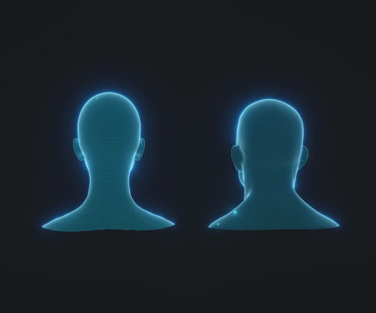 Hologram Male and Female Head 3D Model Animated with Facial Expressions consists of: