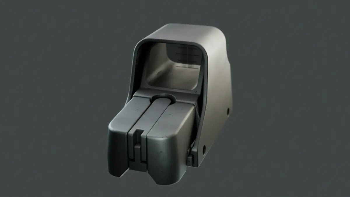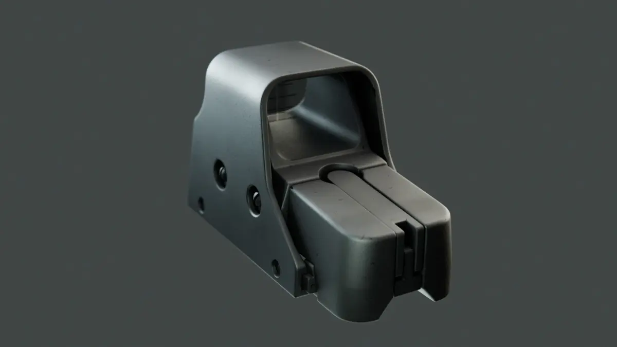 A holographic weapon sight low poly model, quads-based, clean topology, UV-unwrapped, 4K maps included