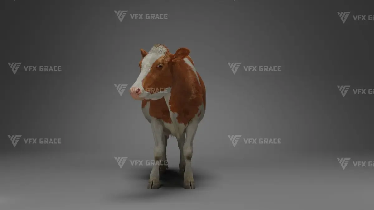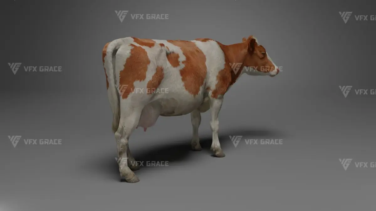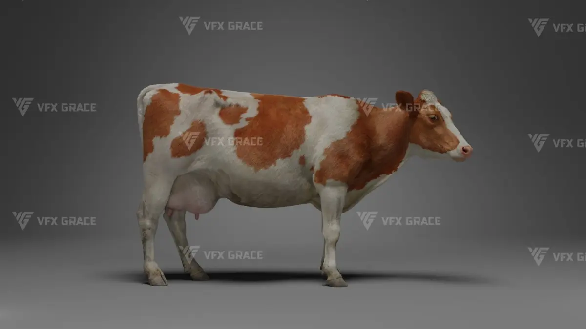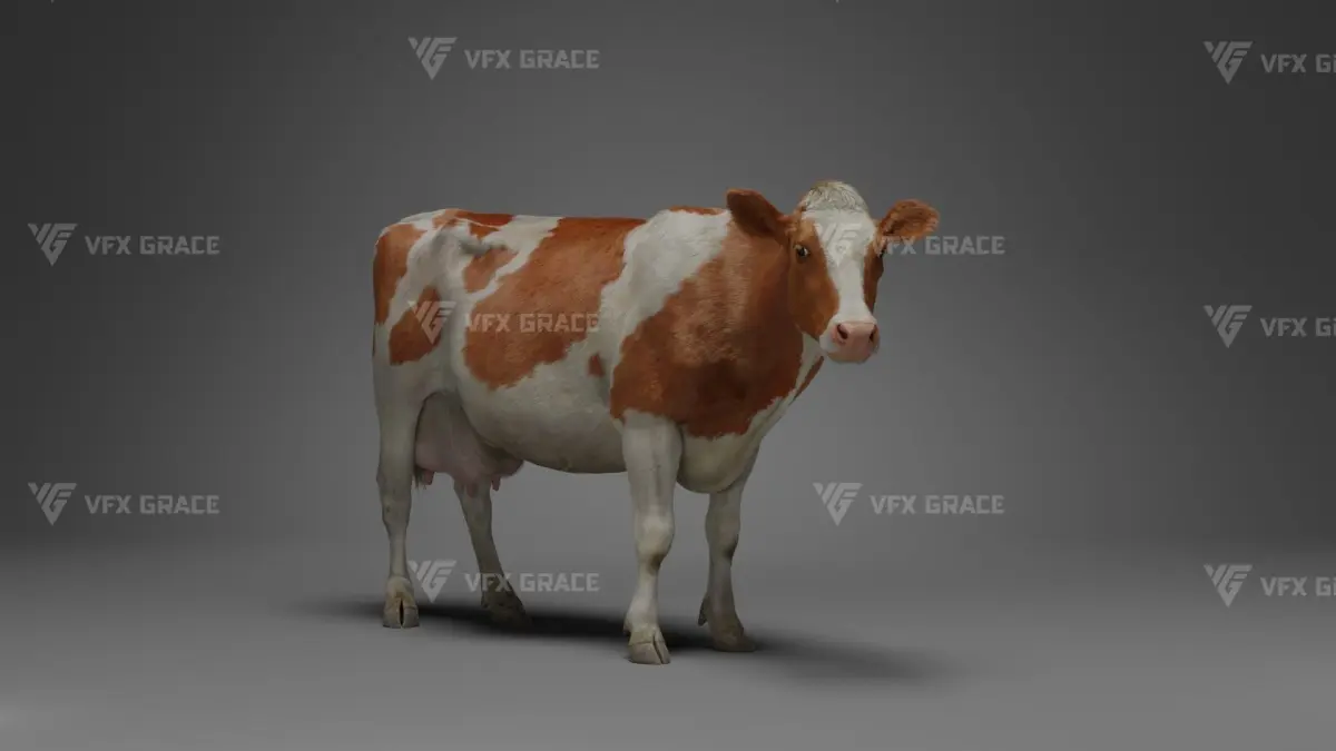 This is a high-quality holstein cow model, featuring textures, fur, rigging, and animations. The textures come in both yellow and black sets. The model has realistic muscle structure; the textures are in UDIM format with 4K resolution, making the effect more realistic. Very detailed rigging is available, allowing flexible control of body movements. Additionally, it includes four lively and realistic animations. This model is made with Blender and Cycles renderer at real-world scale.
