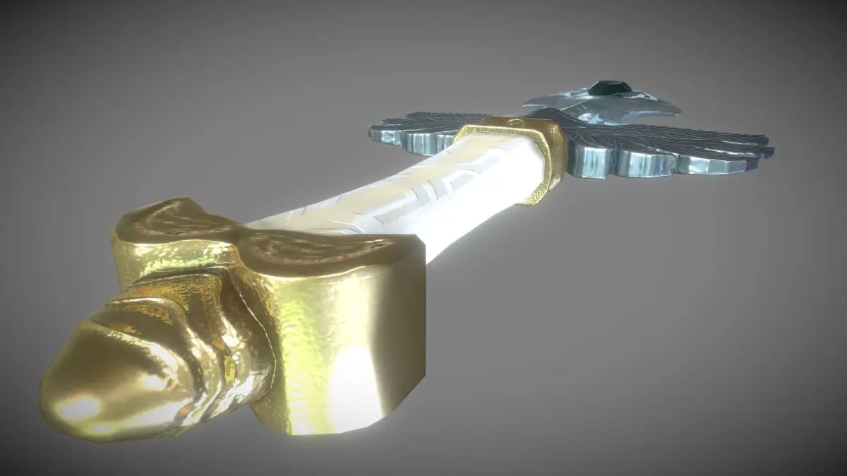 A holy dagger asset made from ivory, gold and blued steel. Texture is one map at 2K. texture variants are for unreal engine (including packed files), unity (metalic standard) and generic PBR