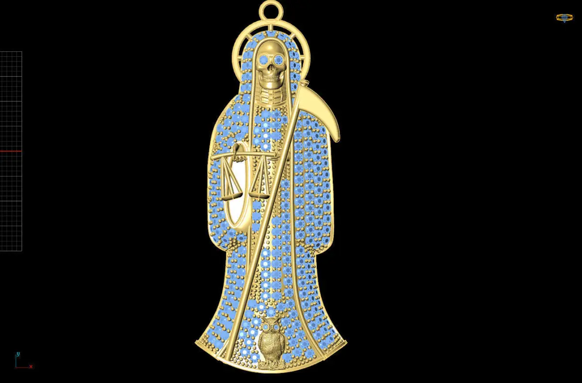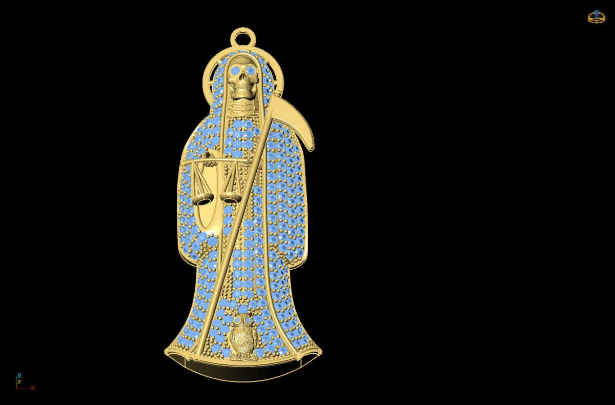 Holy Death Big Size Pendant 3D STL 3DM Skull Santa Muerte 3D 3D print model