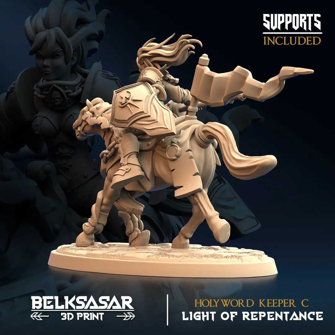 • Holyword KeeperSacred maidens marching on their magnificent steeds, imposing knights who will demonstrate their zeal in the light of repentance, fearlessly facing any opponent who blasphemes against their creed.