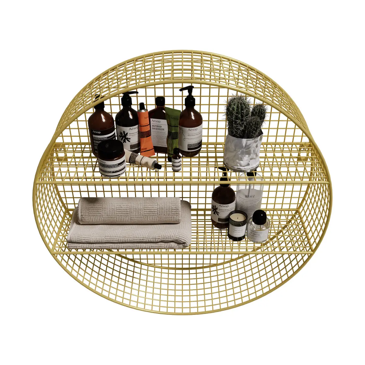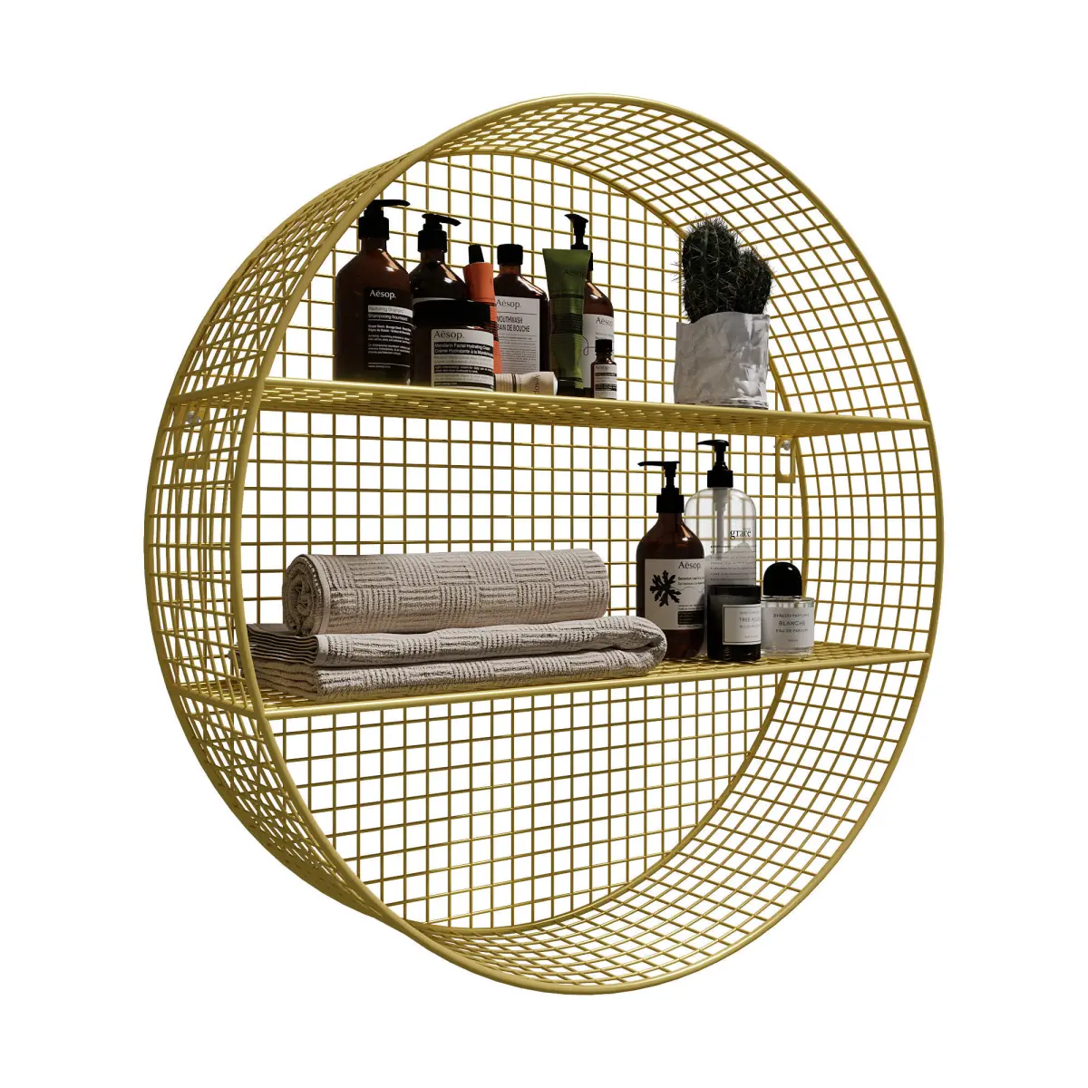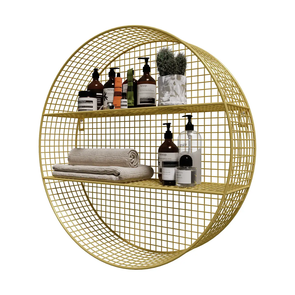 2-TIER NORDIC ROUND WALL MOUNTED GRID GOLD SHELVES | 2-Tier Nordic Round Wall Mounted Grid Gold Shelves by Homary