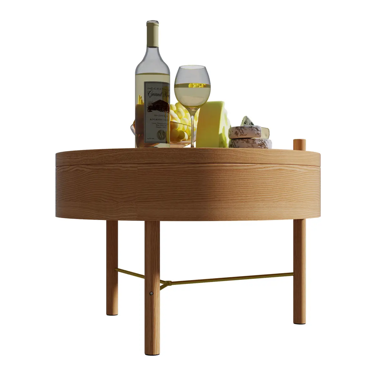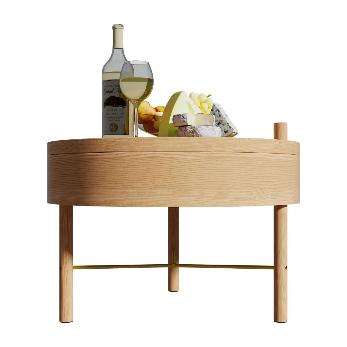 HOMARY MODERN ROUND WOOD ROTATING TRAY COFFEE TABLE WITH STORAGE | Modern Round Wood Rotating Tray Coffee Table with Storage by HOMARY