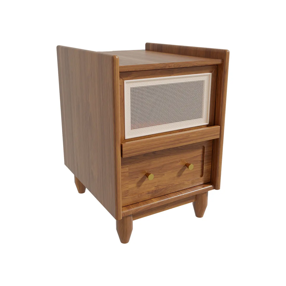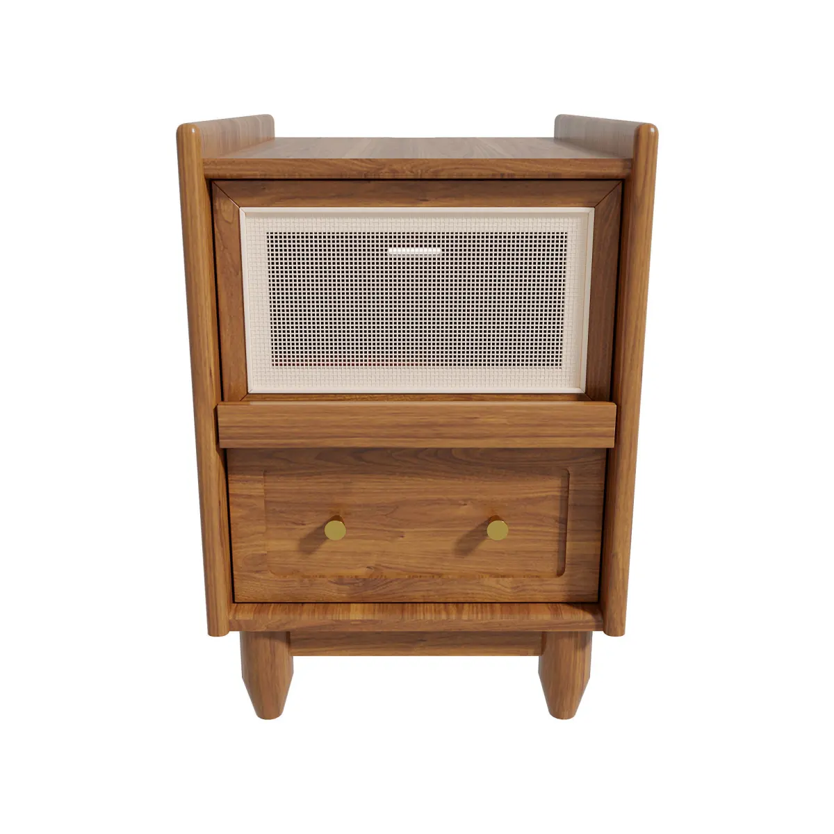 HOMARY RUSTIC RATTAN NIGHTSTAND WITH STORAGE BEDSIDE TABLE | Rustic Rattan Nightstand with Storage Bedside Table by Homary