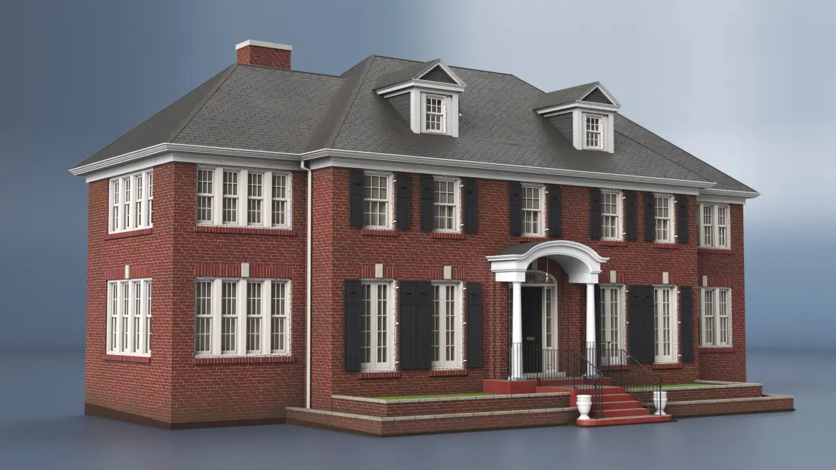 Home Alone Brick Colonial House is a three-dimensional model of a classic brick mansion, showcasing timeless architectural design with modern elements.