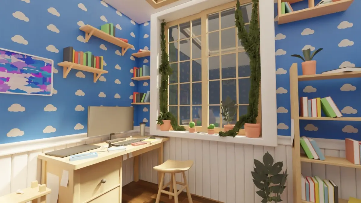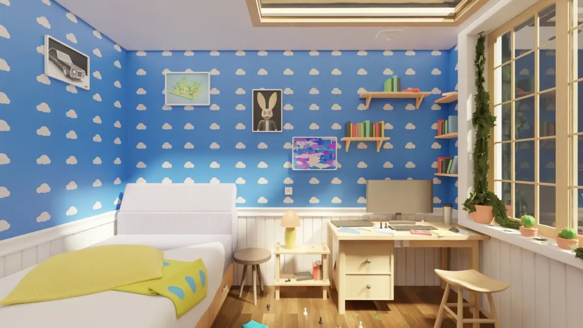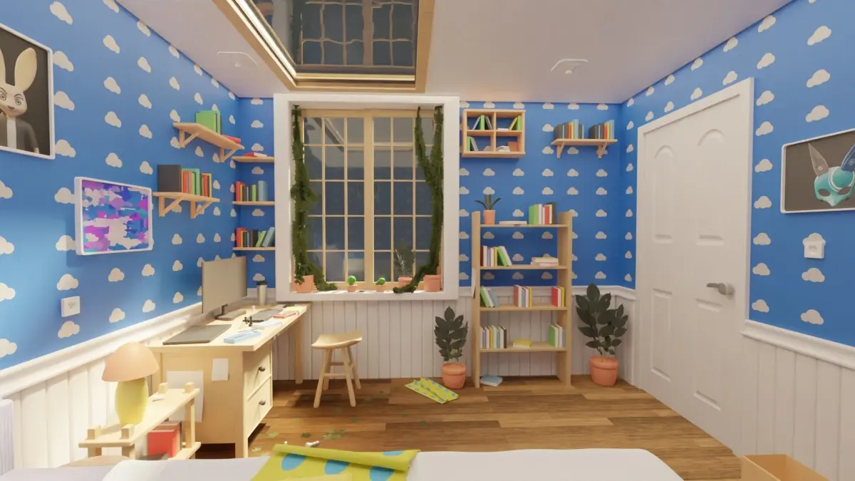 HomeBedroom Interior Environment with cartoon style, Disney Pixar animation style