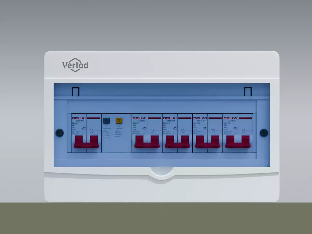 Detailed Internal Layout: Includes 12-way Power Distribution slots with detailed Circuit Breakers (MCB/RCD) and realistic switches.