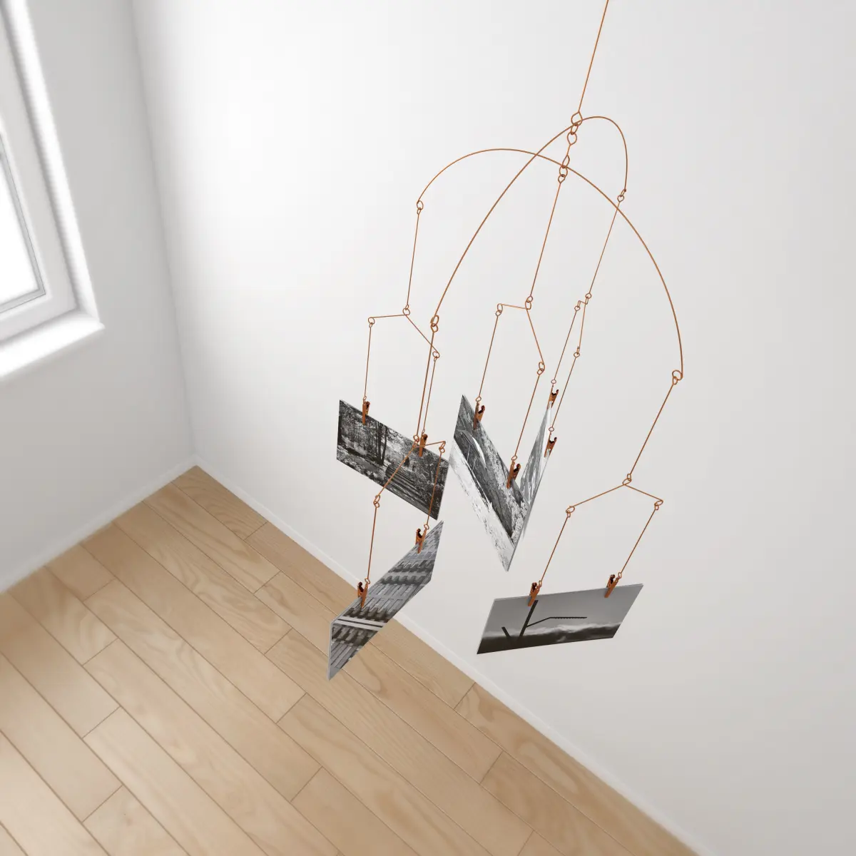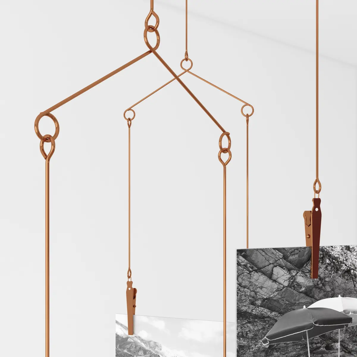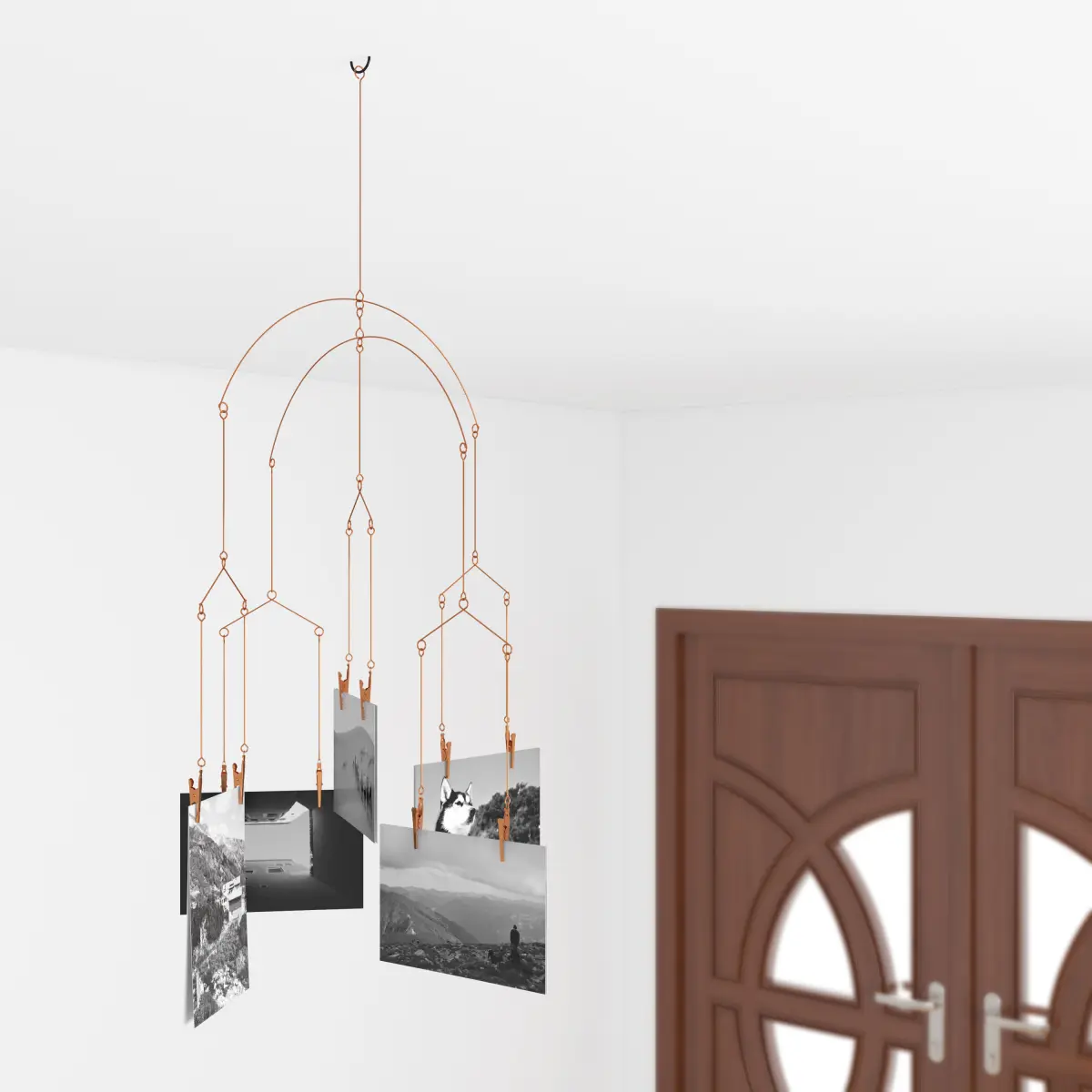 DESCRIPTION: A simple designed home decoration entirely made of copper.The hanging chip clips could hold up to 10 photos (15x10cm).