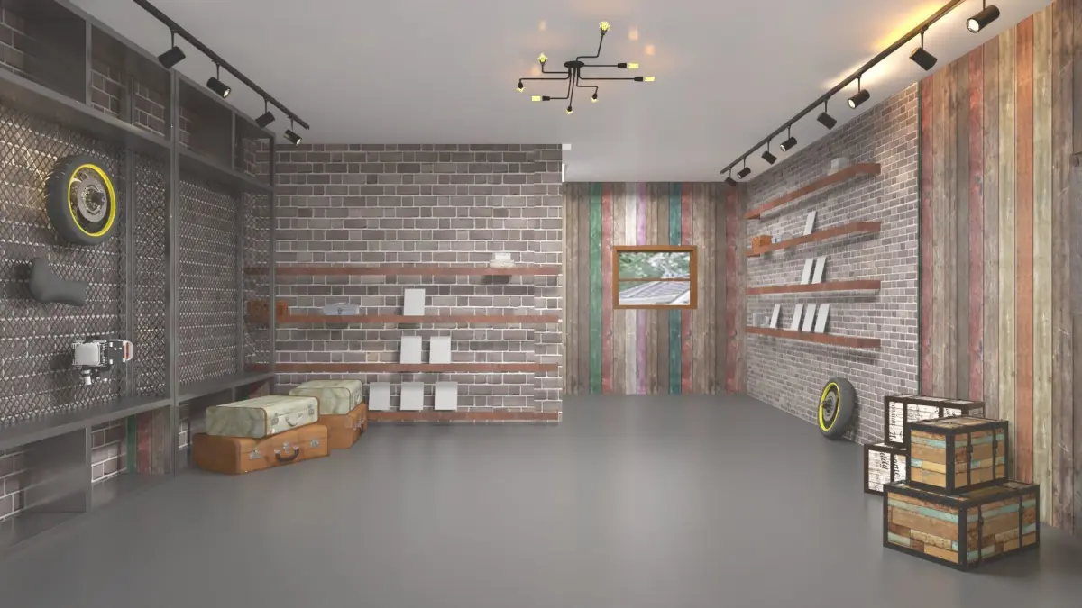 Private home garage and related decoration.
