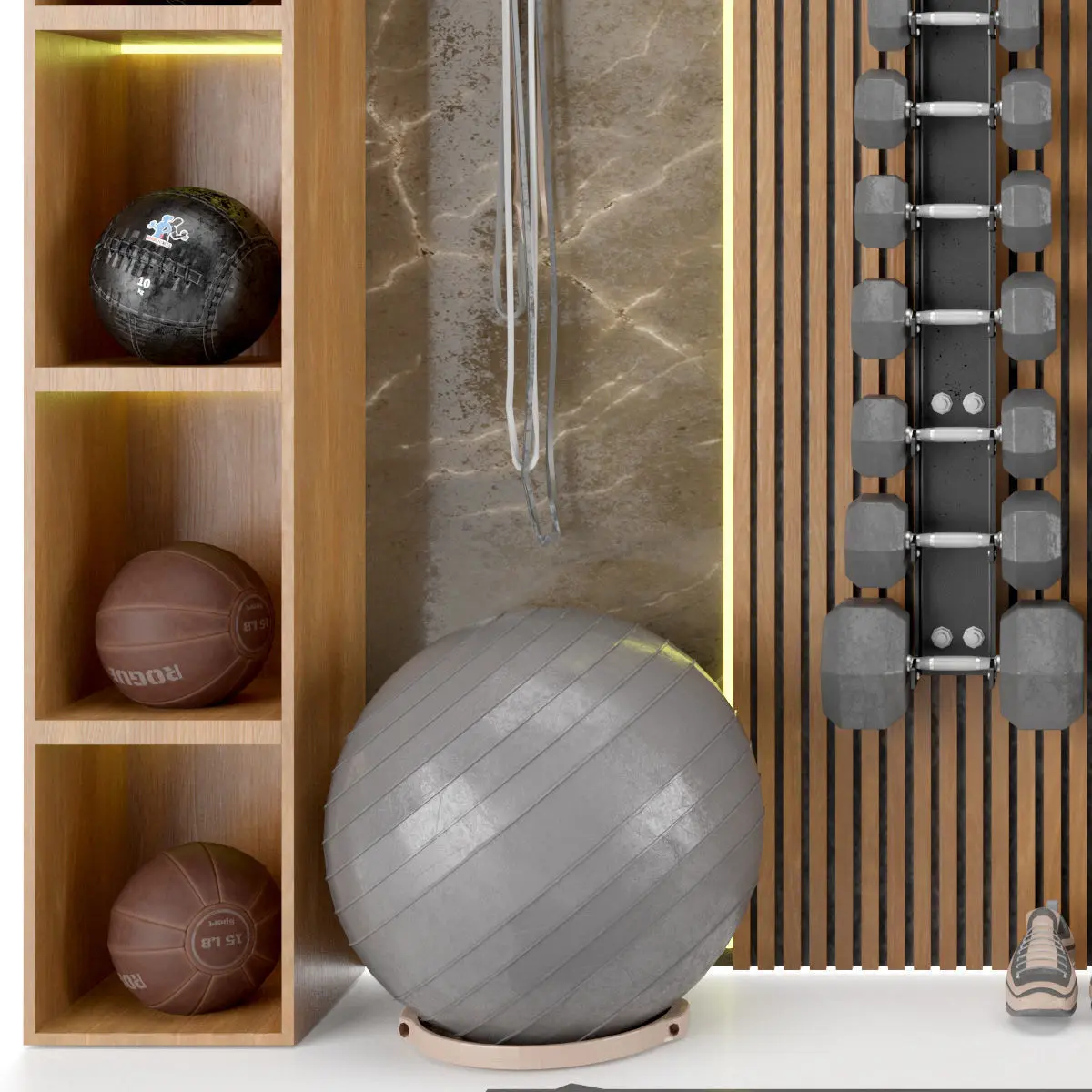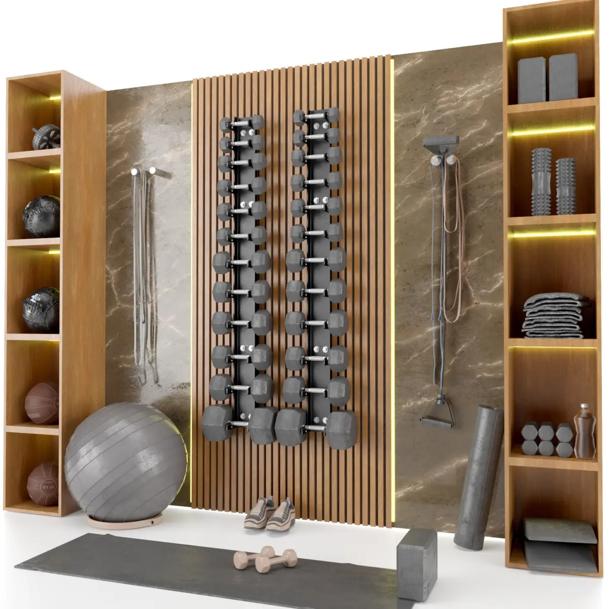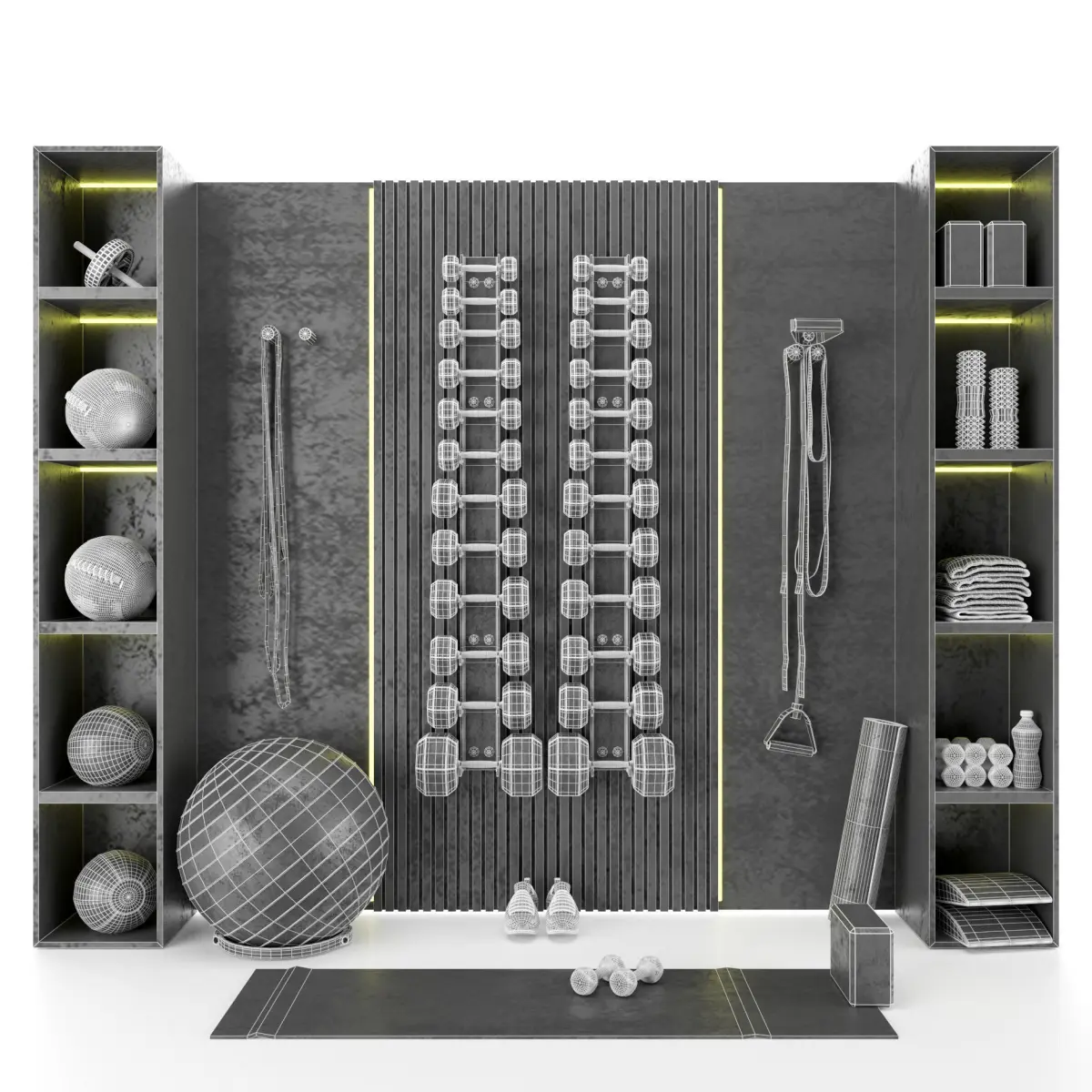 Home Gym Yoga Fitness Decoration Fitness Gray Set 053 3D model